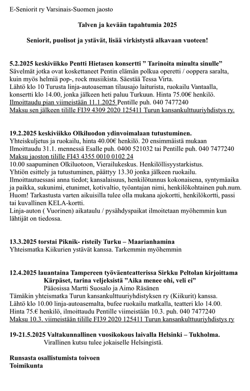 E-Seniorit Varsinais-Suomen jaoston Kesän 2025 tapahtumia.