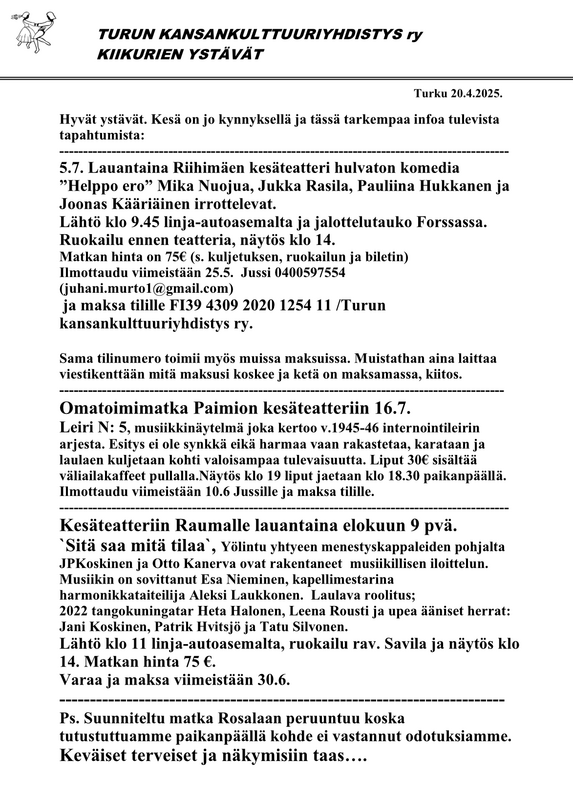 Syyskirje jaostomme syksyn 2025 tapahtumista, sekä Kiikurien ystävät tapahtumatietoa.