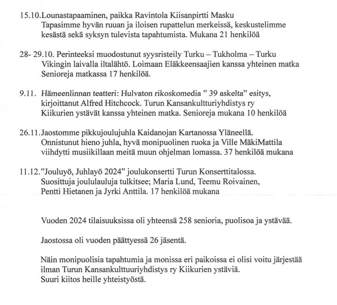 Toimintakertomus vilkkaan toimintavuoden 2024 tapahtumista.