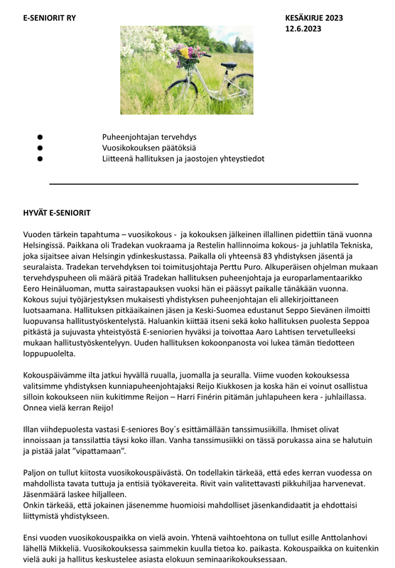 E-SENIORIT RY:n VUOSIKOKOUS 5.-6.5.2014