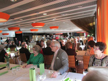 Kello 17.00 laiva irtosi satamasta ja lähti kohti Tukholmaa. Laivassa ei ollut tällä kertaa kuin n. 600 matkustajaa E-seniorit mukaan lukien, joten tilaa oli ja palvelu meitä senioreita kohtaan oli hyvää. Söimme päivällisen herkkuja notkuvasta seisovasta pöydästä ja ilta kului showta katsellessa, tanssiessa, ystävien kuulumisia kysellessä ja tietenkin maailmaa parantaessa.