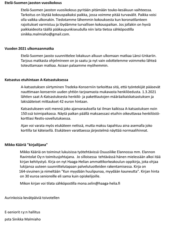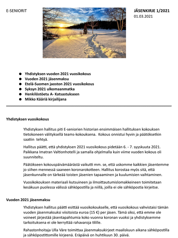 E-SENIORIT JÄSENKIRJE 1/2021.